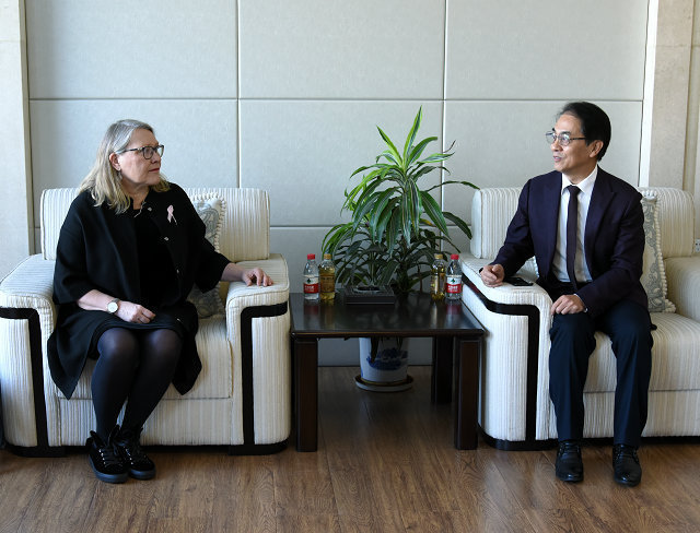 哈工大报讯(王茵/文 闫明星/图)10月24日,副校长任南琪在水资源与水环境国家重点实验室会见了来访的北极大学联盟副主席乌提·斯奈尔门。
