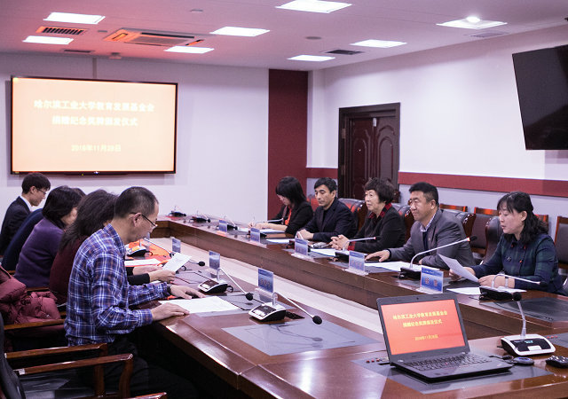 哈工大报讯(闫明星/文 汝伟男/图)11月28日,哈尔滨工业大学教育发展基金会捐赠纪念奖牌颁发仪式在行政楼333会议室举行。哈尔滨国家环保科技产业园华崴装备制造园区发展有限公司向哈工大教育发展基金会捐赠20万元,用于能源学院能源与环境工程研究所实验室建设。