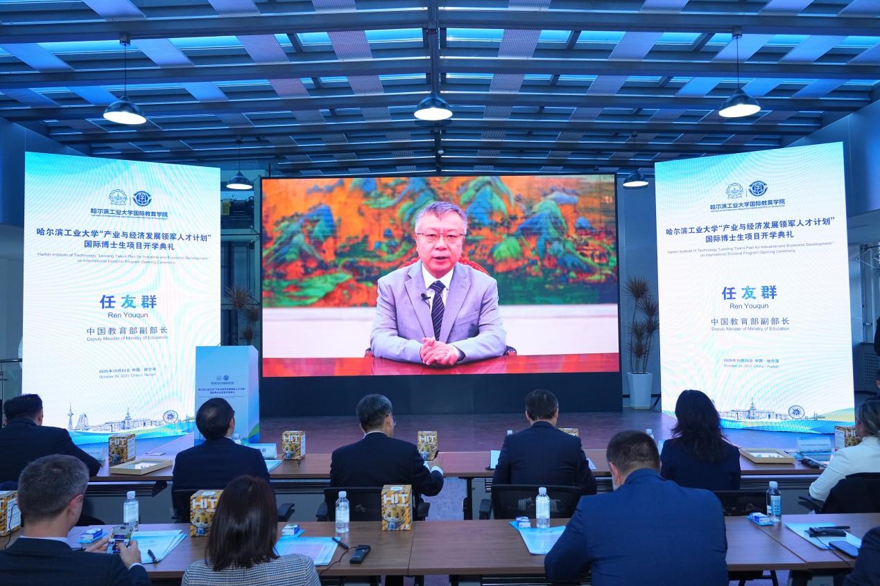 哈工大全媒体(梁英爽/文 辛然/图)为深入服务国家战略、积极推动教育对外开放,学校设立“产业与经济发展领军人才计划”国际博士生项目(以下简称“国际博士生项目”),立足国际化、产学研深度融合、跨学科交叉等核心方向,依托学校在工程与管理学科领域的综合优势,系统培养兼具全球视野的高层次复合型人才。10月24日,国际博士生项目开学典礼在校举行。马来西亚总理办公室发来贺信,马来西亚人民公正党高级顾问维杰德拉·普尔尼玛现场宣读。教育部副部长任友群视频致辞,工业和信息化部国际合作司二级巡视员唐子才、校长韩杰才出席典礼并致辞。黑龙江省教育厅副厅长程爽、哈尔滨市副市长杨淑鹏出席典礼。副校长帅永主持典礼。首批录取的9名博士生来自俄罗斯、马来西亚、乌兹别克斯坦、吉尔吉斯斯坦、埃塞俄比亚、贝宁6个共建“一带一路”国家,均是所在国高级官员、资深专家和领军企业家。
