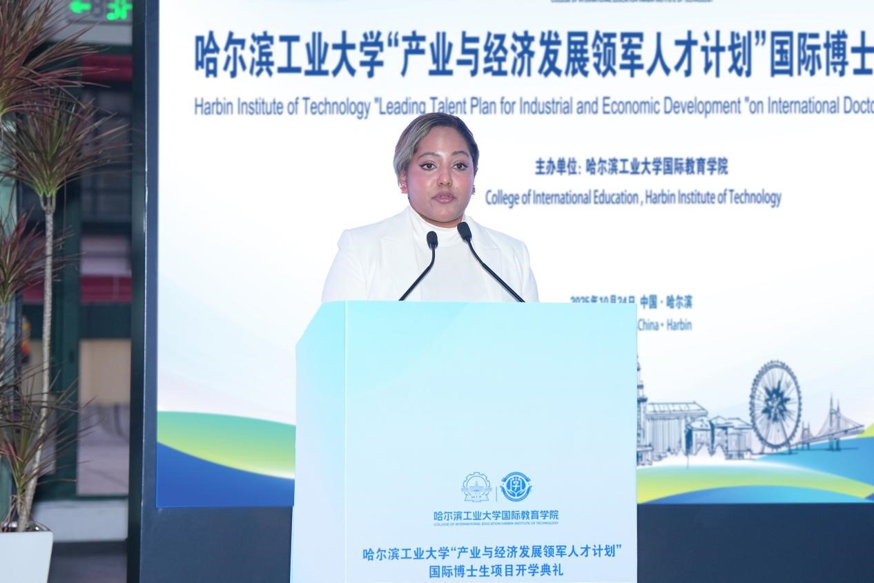 博士生代表、埃塞俄比亚资本市场管理局局长哈娜·特赫尔库·本蒂表示,埃塞俄比亚正处在产业升级与经济转型的关键阶段。哈工大在科技创新、产业赋能领域的深厚积淀,让国际博士生项目有了坚实的基础,让我坚定选择了哈工大。我将在哈工大认真汲取知识,积极交流探讨,把中国的成功经验带回埃塞俄比亚,为推动两国在经贸、产业领域的深度合作搭建桥梁。